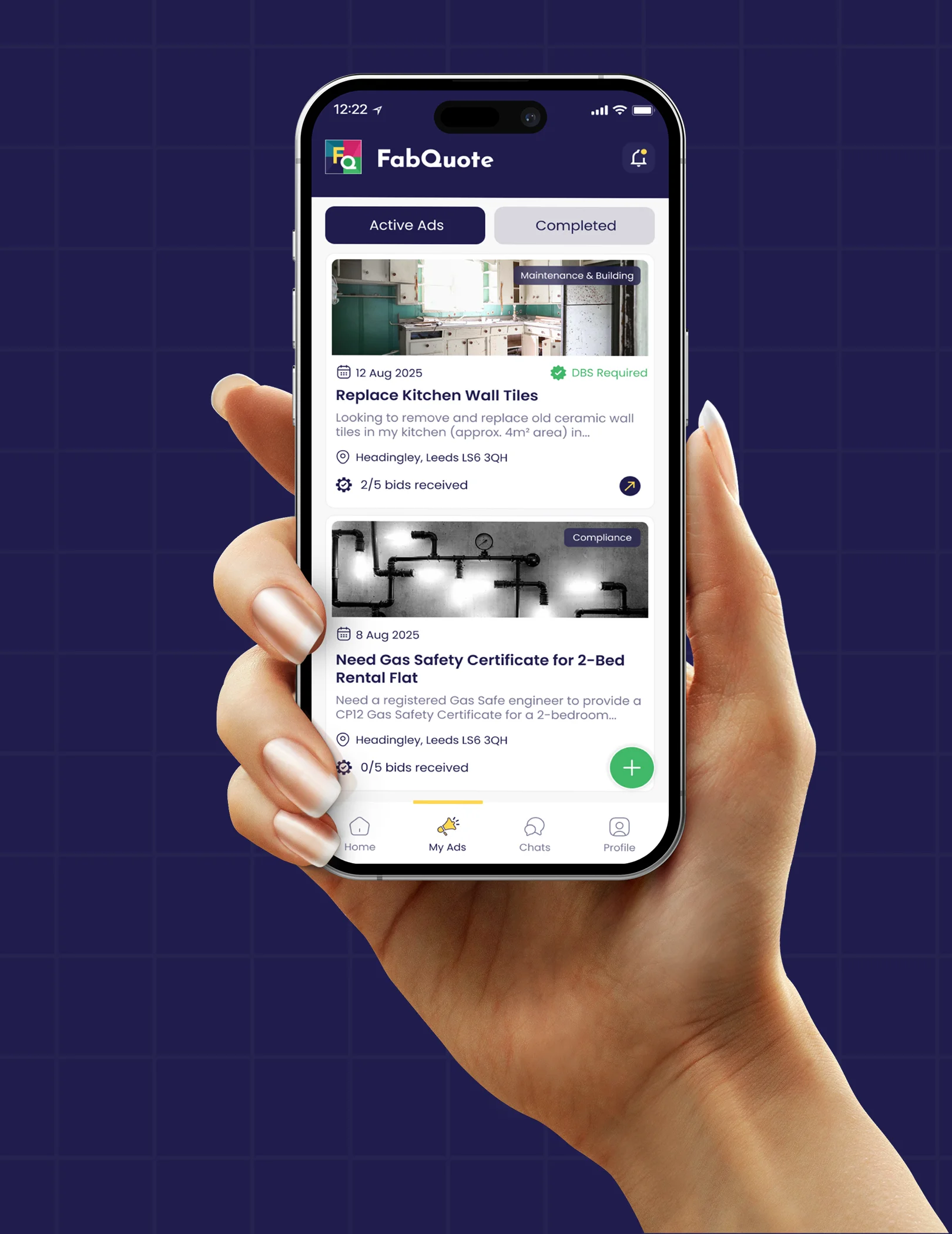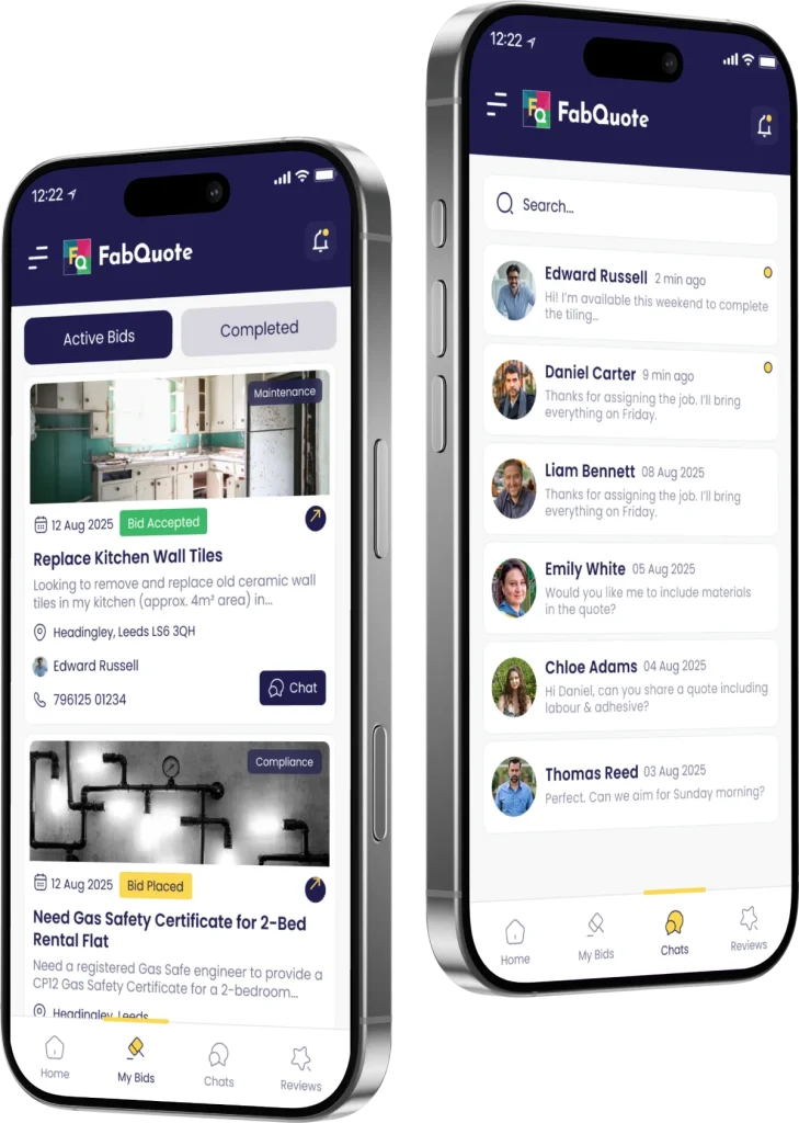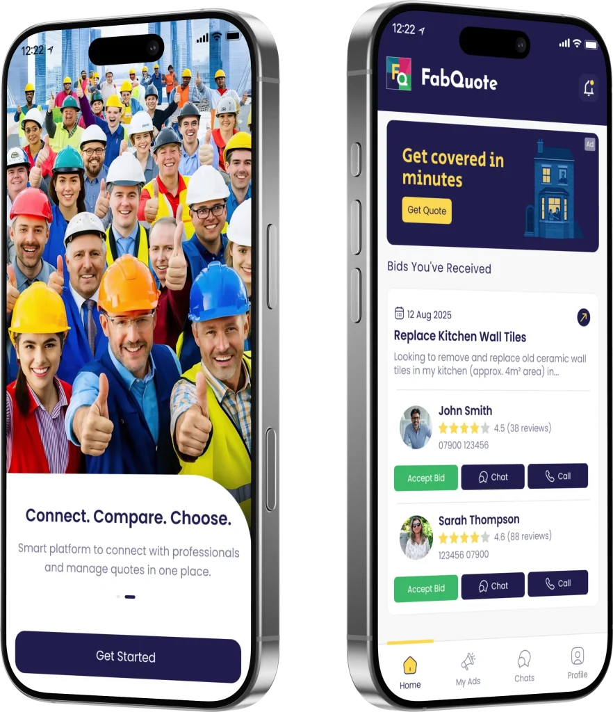 FabQuote is a platform that connects users with trusted local tradesmen. Users can post a job and receive quotes, while contractors can respond to relevant job requests through the app.